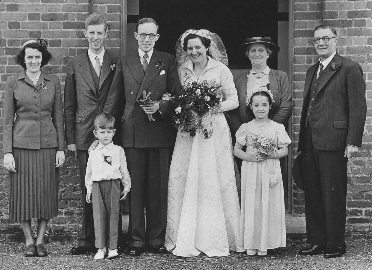 The wedding, back row from left: Grace Thurling. Alan Featherstone, John & Irene Furmage!, Irene’s mum and dad, children?