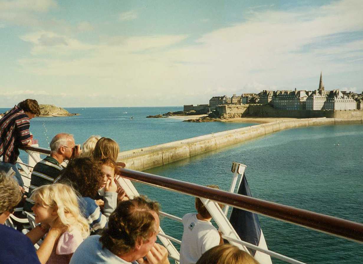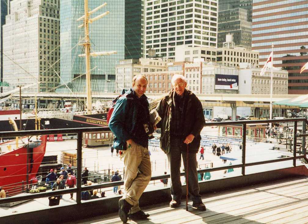 John and David visit New York in 2002. Here we’re on the Stanton island ferry with the less famous skyline in the hazy background, it is only 6 months since the world trade centre was attacked, there is a powerful light beam going up into the air from ground zero every night during this first year after the attack