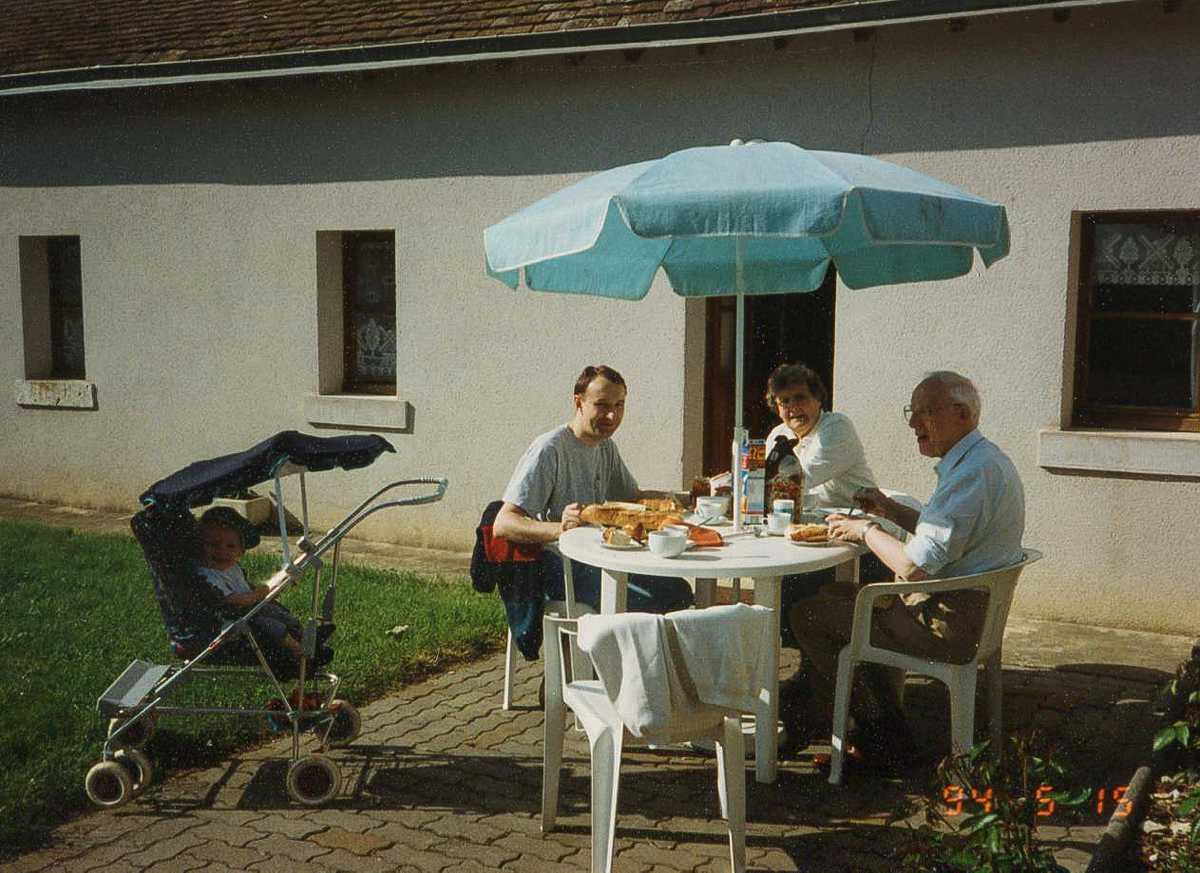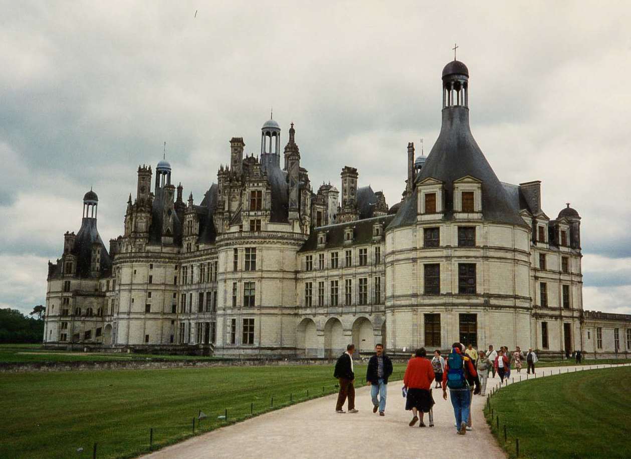 Visiting Chambord Chateau, Loire in 1994. In fact dad had agoraphobia (fear of open spaces) he found the wide stairs inside impossible…