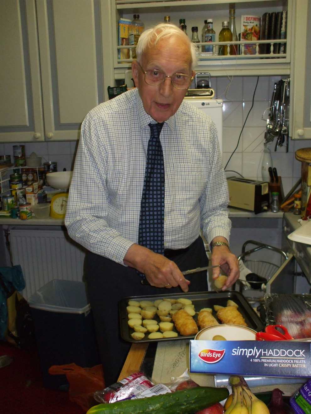 John always loved cooking. usually a slow process, with many pauses and chats between starting preparations and actually serving the food! North Walsham, around 2013